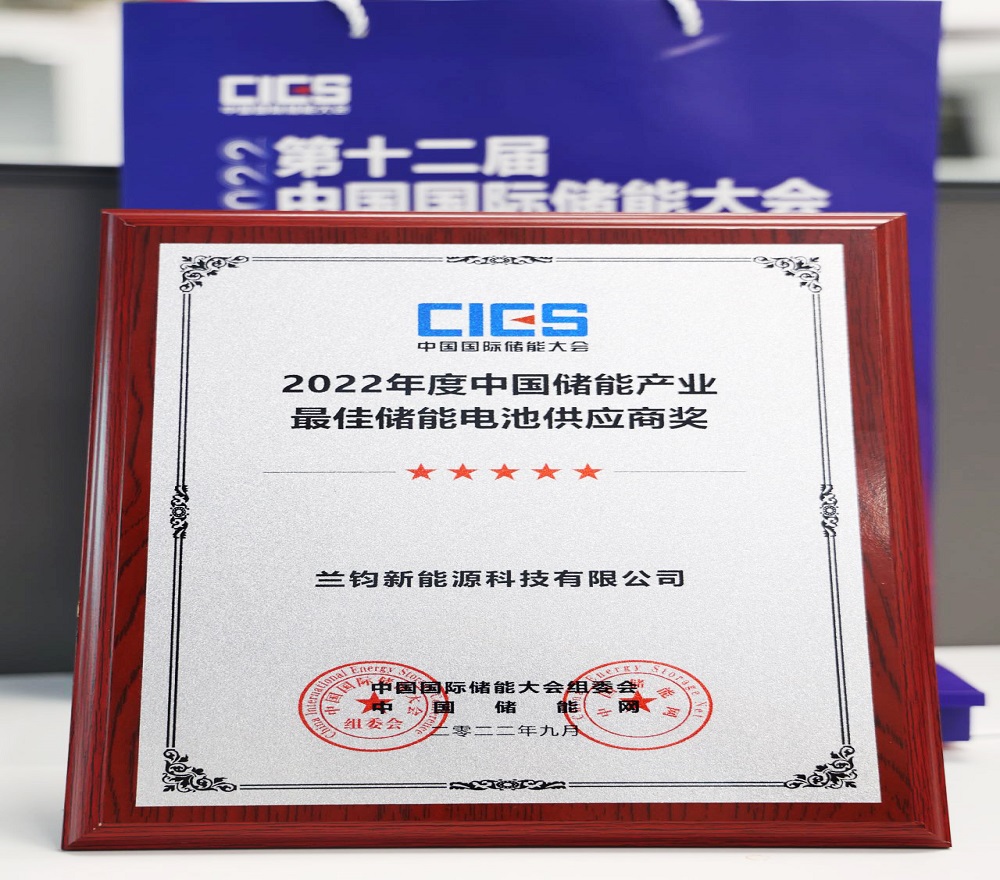 近日,由中国化学与物理电源行业协会主办的第十二届中国国际储能大会在杭州盛大开幕,兰钧新能源科技有限公司荣获“2022年度中国储能产业最佳储能电池供应商奖”。
