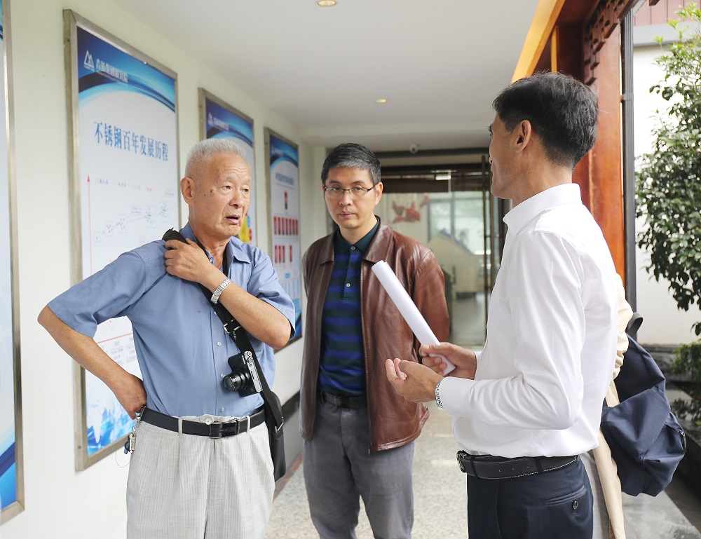 陈秉钊一行在孙小侠的带领下参观了青拓集团供销大厅,近距离观看不锈钢原材料和不锈钢产品;穿过研究院观看了科研设备,了解各设备的使用情况;走进家具展厅感受不锈钢产品在生活中的广泛运用;在电子展厅观看宣传片了解了青拓的发展历程。孙小侠详细介绍了青拓集团在全球的产业布局规划和笔尖钢、QN系列产品等科研创新成果。