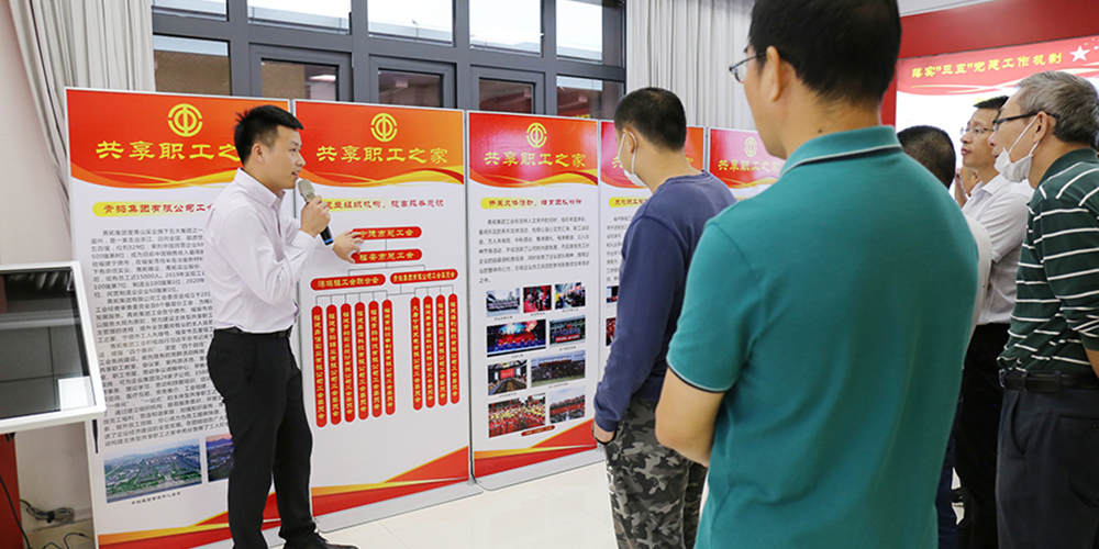 观摩团参观了集团供销中心、研究院、家具展厅、党群展厅,深入企业共享职工之家配套设施场所进行实地观摩,并观看了企业宣传片,钟盛江详细介绍了青拓集团工会以职工需求为导向,因地制宜打造独具特色的精准配套设施服务,不断为职工之家建设赋予新内涵、新功能。杨德星指出:青拓集团工会依托既有的党群活动阵地,打造服务职工“一体化”“一站式”的主体型共享职工之家,面向湾坞工贸区企业,共享园区娱乐设施、场所,让共享职工之家真正转起来、活起来、强起来,为宁德企业创建职工之家树立了良好榜样。