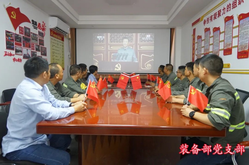 在办公楼一楼会议室的主会场,公司党委委员和其他领导班子成员,与综合部党支部全体党员一起,手持党旗,集中观看庆祝大会,共同见证建党100周年这一举世瞩目的历史时刻。党员、入党积极分子及职工代表在厂部、车间的6个分会场集中收看大会直播实况。