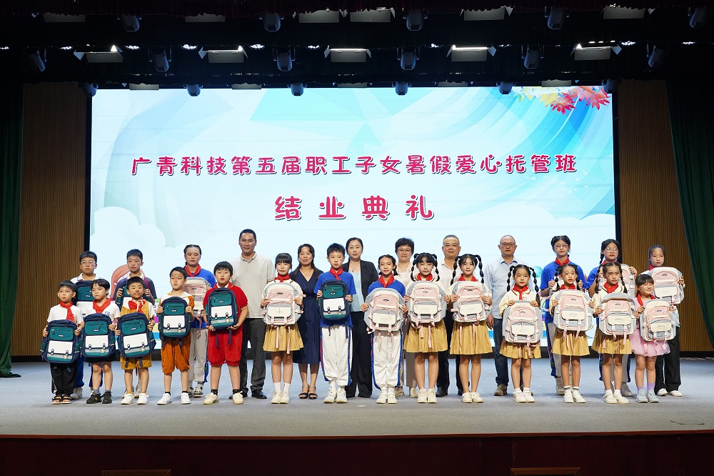 8月17日,广东广青金属科技有限公司第五届职工子女暑假爱心托管班结业典礼在公司办公楼礼堂举办。阳江市总工会党组成员、副主席程喜悦,阳江高新区总工会主席阮广渊,广青科技党委副书记、工会主席王大庆,以及职工家长和子女250多人参加结业典礼。