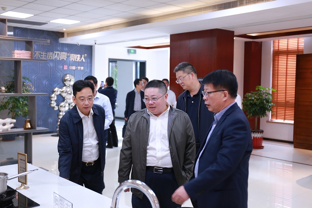 李兴湖一行先后参观了供销大厅、研究院、家具展厅和电子展厅等场所,深入了解了青拓集团所研发的“笔尖钢”“手撕钢”“QN系列不锈钢产品”及青拓集团独创的“RKEF+AOD双联法冶炼工艺”。