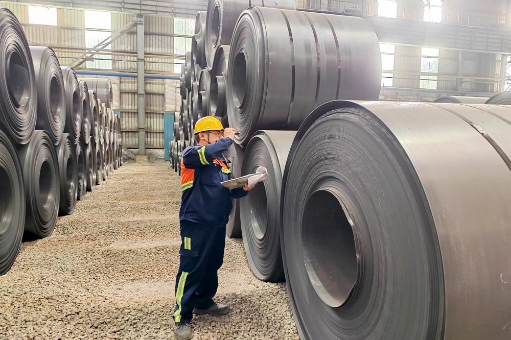 库房区内堆放着一排排刚出炉的钢卷,持续炙烤下,存放钢卷区的温度高达四五十度。他们穿梭在热浪夹缝中,入库、找卷、登记、调拨、安排发货,身体感觉承受不住的时候才会跑到休息室内歇息一会。他们开玩笑说:从库区到休息室短短一分钟的路程,可以让你享受到冰火两重天的感觉。说这句话的时候,他们脸颊上的汗滴落到地板上碎成几瓣,苦中作乐,没有半点怨言,笑容一直洋溢在他们的脸上。