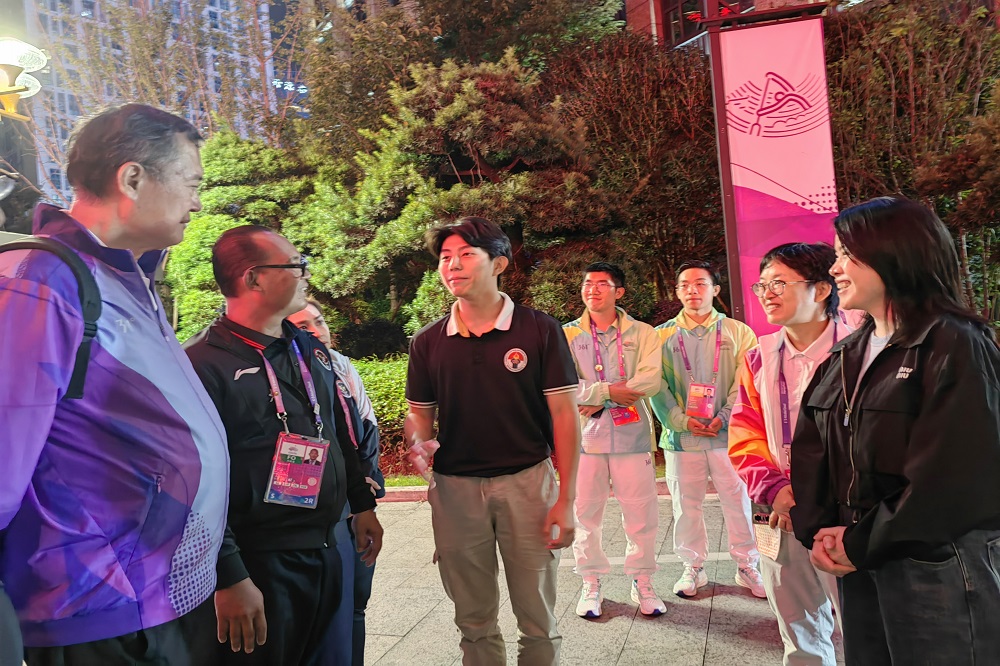 在温州龙舟运动中心举办的杭州亚运会龙舟赛事顺利收官之际,孙建芬带队前往印尼龙舟队驻地温州君庭酒店,亲切慰问了印尼龙舟队队员,并与印度尼西亚赛艇联合会副主席Ir.Budiman Setiawan等进行了沟通和交流。